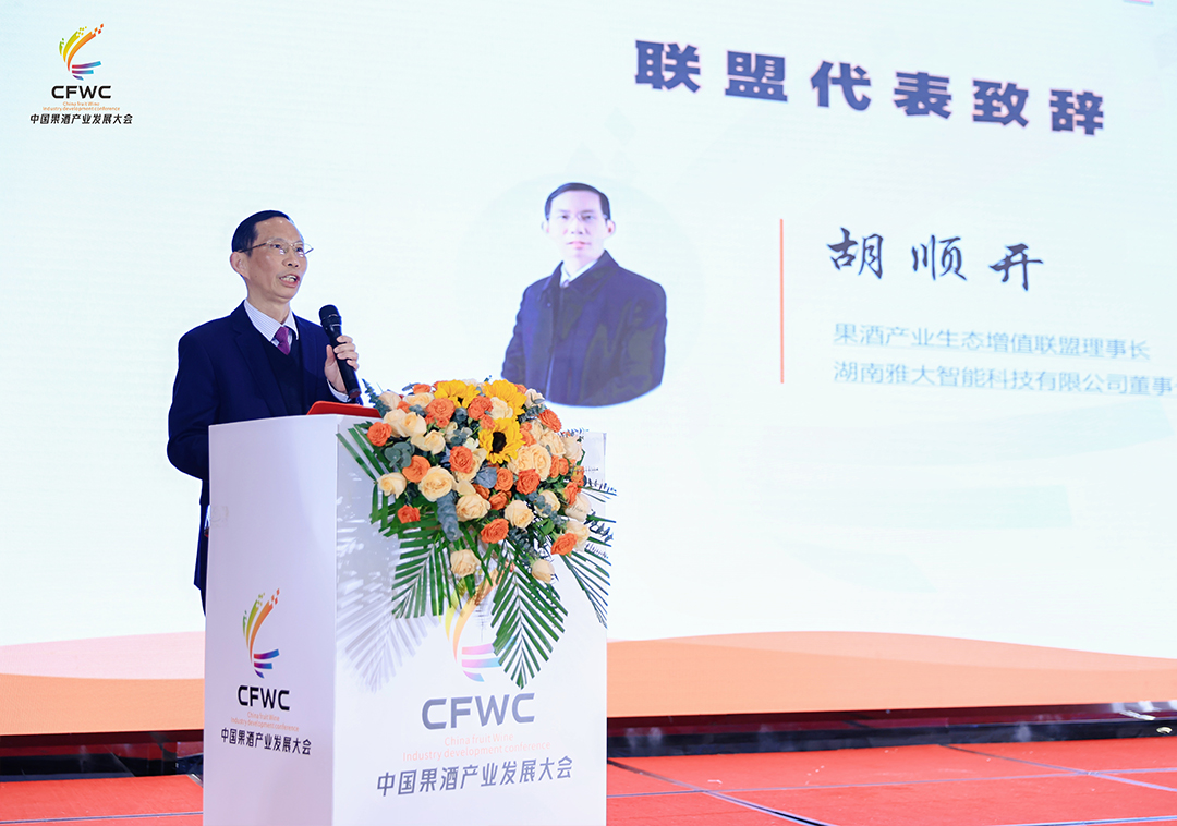 果酒產(chǎn)業(yè)生態(tài)增值聯(lián)盟理事長胡順開代表支持單位致辭。