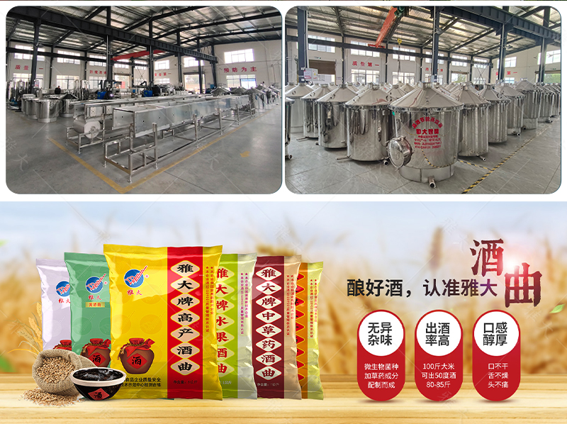 雅大擁有26年釀酒行業(yè)經(jīng)驗(yàn),不僅生產(chǎn)設(shè)備與酒曲,還自營(yíng)酒廠。設(shè)備均經(jīng)老師傅反復(fù)調(diào)試與實(shí)戰(zhàn)改進(jìn),如側(cè)開口設(shè)計(jì)、錐形底、節(jié)能反燒鍋爐、全自動(dòng)蒸糧機(jī)等,都很大的