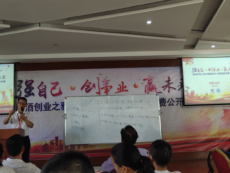 首先,蔣老師從理論上為大家詳細(xì)講解了泡糧、初蒸、燜糧、復(fù)蒸、下曲、糖化、入池發(fā)酵的每一個(gè)細(xì)節(jié)。