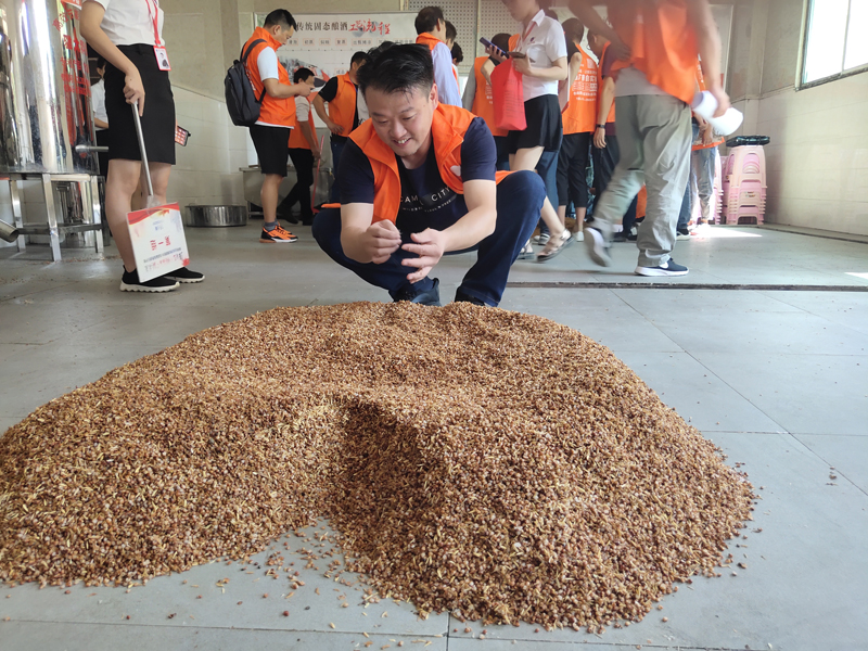 學(xué)員們親自動(dòng)手參與高粱酒釀造