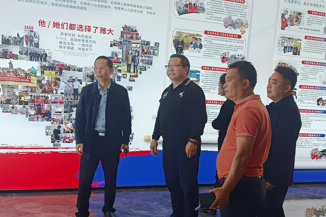 在雅大董事長胡順開、副總經(jīng)理劉思陽的陪同下,李球一行分別參觀了產(chǎn)品展廳,貯藏酒窖、酒曲生產(chǎn)車間、設備生產(chǎn)車間、釀酒廠、酒產(chǎn)品自動化灌裝車間,每到一處,胡董事長分別向領導們進行了詳細地介紹。