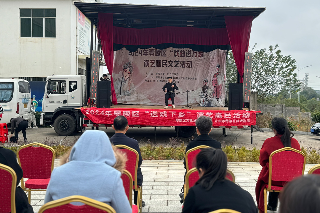 11月20 日,由零陵區(qū)委、區(qū)人民政府主辦,零陵區(qū)委宣傳部、零陵區(qū)文化旅游體育局協(xié)辦,永州市零陵花鼓戲劇團(tuán)承辦的“戲曲進(jìn)萬家”演藝惠民文藝活動(dòng)走進(jìn)湖南雅大智能科技有限公司,開展了黨的二十屆三中全會(huì)精神文藝宣講公益演出活動(dòng),為企業(yè)職工獻(xiàn)上了經(jīng)典劇目,演員們精彩的演出博得現(xiàn)場觀眾陣陣掌聲,讓企業(yè)職工不出廠門過足了戲癮。雅大公司黨支部書記、董事長胡順開作了答謝詞,對演出人員表示熱烈歡迎和真摯感謝。